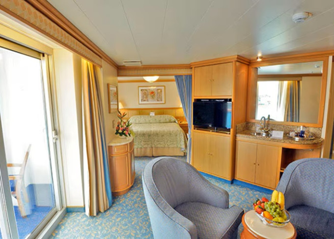 | M1 - Club Class Mini Suite s balkonem 33 m² (včetně balkona). Výhody Club Class. Max 4 osoby (gauč + rozkladacie lůžko). | 407 960 Kč 203 980 Kč za osobu |