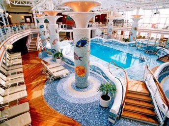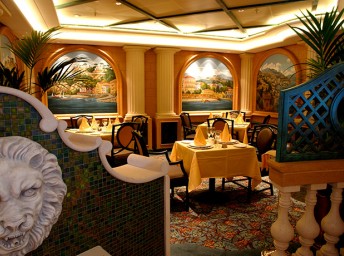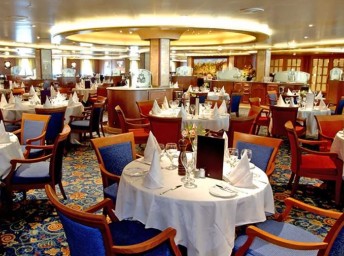 Stravování ve speciálních restauracích a zařízeních je za příplatek: například steakhouse Crown Grill, italská trattorie Sabatini’s, gourmetské restaurace The Chef’s Table nebo Chef’s.