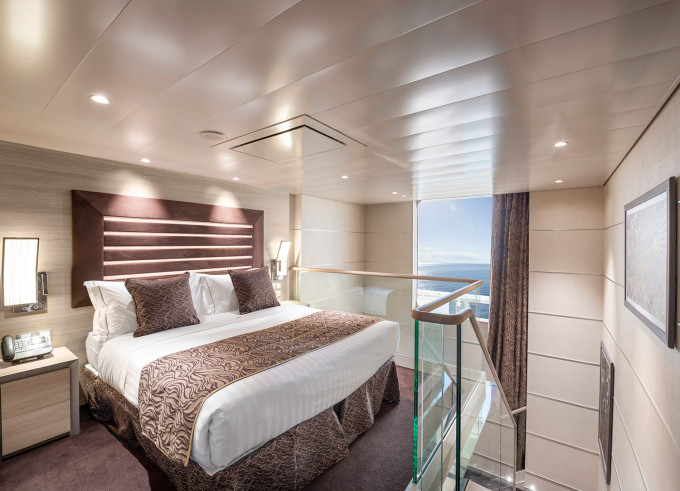 Kajuta s balkónem: 19 - 22 m², kajuta s manželskou postelí (na požádání 2 oddělené postele) a rozkládací pohovka. Klimatizace, koupelna se sprchou nebo vanou a WC, toaletní stolek, prostorná skříň, interaktivní TV, telefon, sejf, vysoušeč vlasů, virtuální asistentka ZOE. Balkony se stolkem a židlemi. Některé kajuty mají omezený výhled.