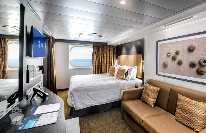 Kajuta oknem: 12 - 25 m², kajuta s manželskou postelí (na požádání 2 oddělené postele) a 1-2 vyklápěcí horní lůžka. Klimatizace, koupelna se sprchou a WC, toaletní stolek, skříň, interaktivní TV, sejf, telefon, vysoušeč vlasů, virtuální asistentka ZOE, neotevíratelné okno. Kajuty v kategorii Bella a některé Junior a Deluxe mají omezený výhled.