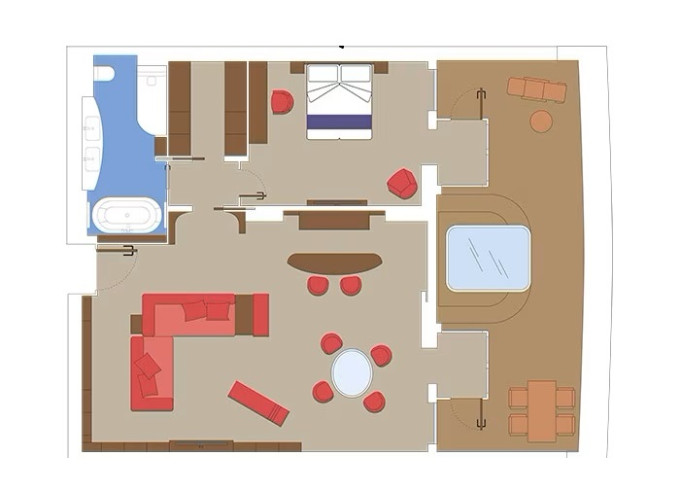| YC3 - Yacht Club Royal Suite 51-59 m² / balkon s vířivkou 42-51 m². Oddělený obývací pokoj a ložnice, šatník, koupelna s vanou. Max 4 osoby. 16/18. paluba. Cenový model MSC Yacht Club. | 315 144 Kč 105 048 Kč za osobu | ||