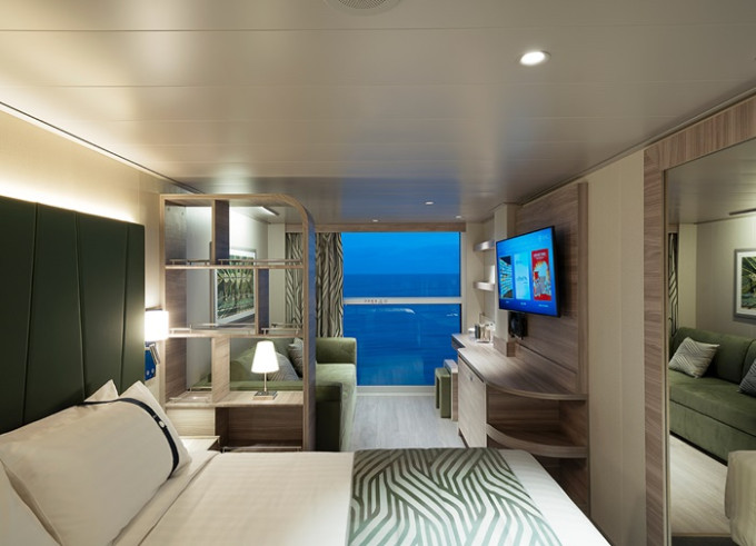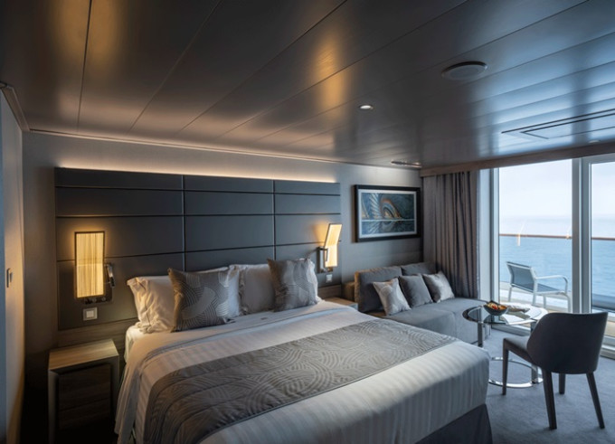 Kajuty Infinite - VL1, VL2 - kajuty s panoramatickým oknem, některé jsou se zasouvacím oknem, které se po otevření změní na skleněnou balustrádu.