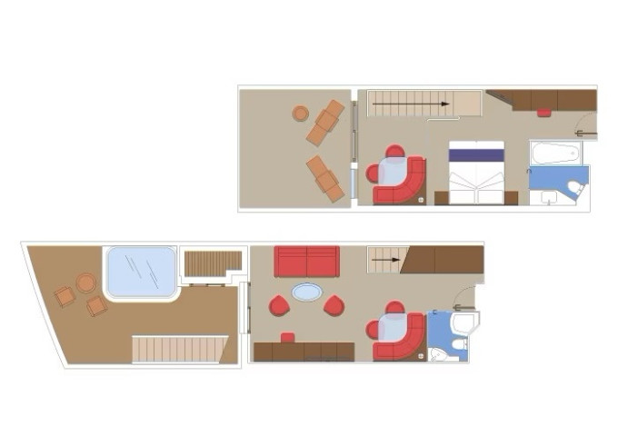 | YCD - Yacht Club Duplex Suite 46 m² + balkon 6 m². 2 podlaží, 2 koupelny (1 s vanou) Max 4 osoby. 16. paluba. Cenový model MSC Yacht Club. | 162 472 Kč 81 236 Kč za osobu |