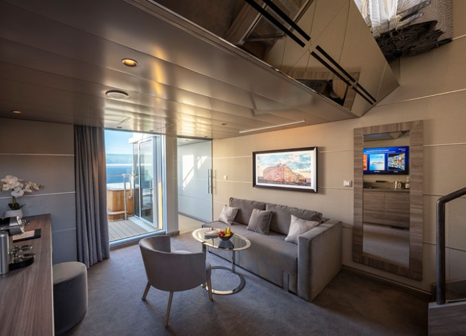 | YCD - Yacht Club Duplex Suite 46 m² + balkon 6 m². 2 podlaží, 2 koupelny (1 s vanou) Max 4 osoby. 16. paluba. Cenový model MSC Yacht Club. | 103 394 Kč 103 394 Kč za osobu |