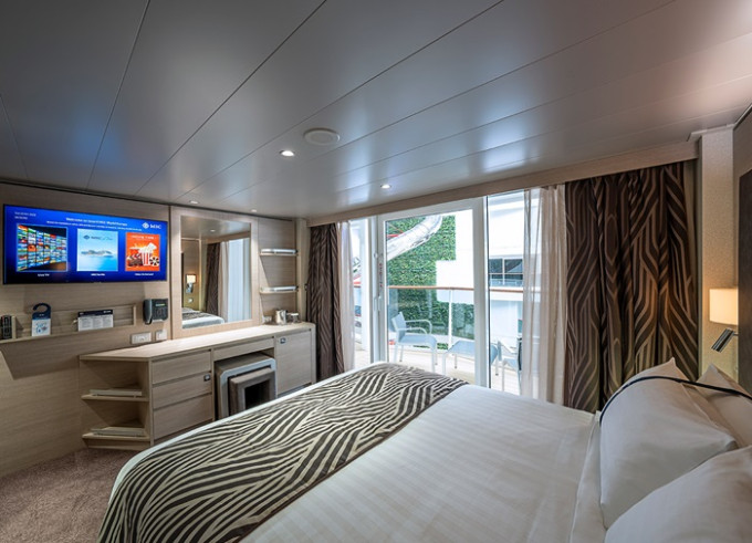 - ubytování v plně vybavené kajutě: vlastní koupelna se sprchou a WC, interaktivní TV, telefon, trezor, vysoušeč vlasů, regulovatelná klimatizace, minibar (za poplatek), Wi-fi (za poplatek)