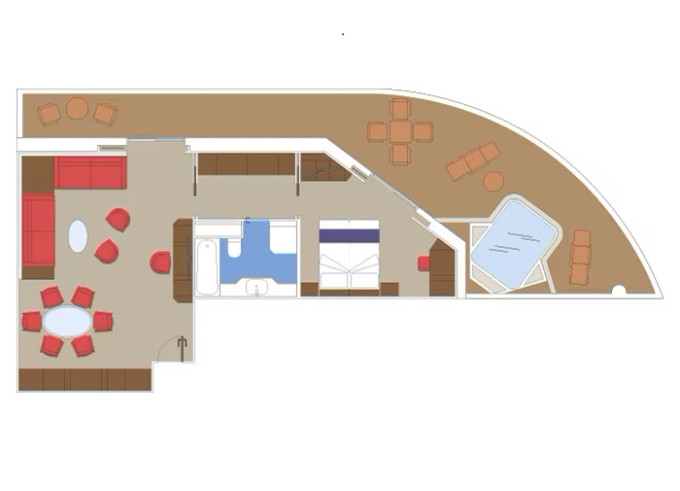 | YC3 - Yacht Club Royal Suite 51-59 m² / balkon s vířivkou 42-51 m². Oddělený obývací pokoj a ložnice, šatník, koupelna s vanou. Max 4 osoby. 16/18. paluba. Cenový model MSC Yacht Club. | 243 883 Kč 243 883 Kč za osobu | ||