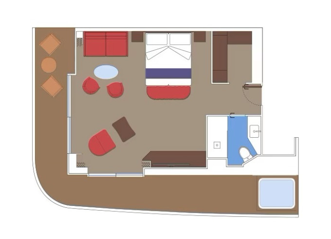 Vztahuje je se k typům a kategoriím kajut: s balkónem BA a apartmány Suites SD, SXJ, SXT, SX, SLJ, SLW, SLT, SLP, SLS, SL2, SL1, SRS, SRP, SR2, SR1, SM, VLA