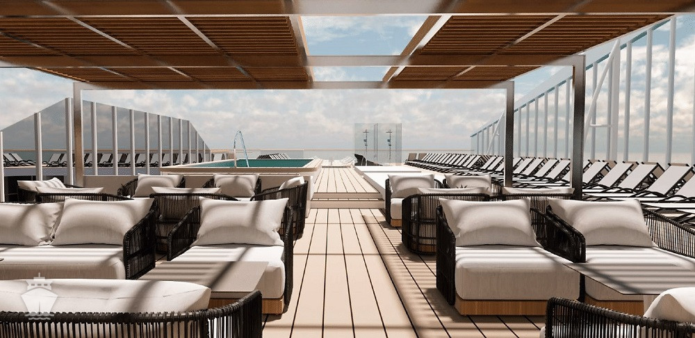 - sportovní aktivity na otevřených palubách (jogging, basketbal, fotbal, tenis), bazény a lehátka