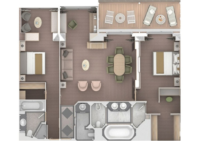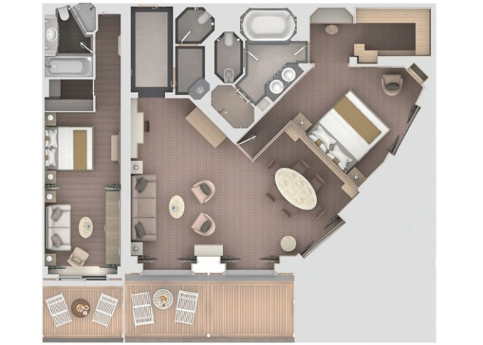 | O1 - Owner's Suite 1 88 - 98 m² (včetně balkonu). Ložnice, oddělená obývací a jídelní část. | 1 248 242 Kč 416 081 Kč za osobu | ||