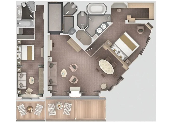 | R2 - Royal Suite 2 142 m² (včetně 2 balkonů). Royal Suite prepojená s Veranda Suite. | 1 122 916 Kč 1 122 916 Kč za osobu |