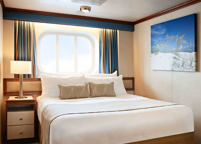 | OV - Vnější kajuta / omezený výhled 15 m². Neotevíratelné okno s omezeným výhledem. Max 2-4 osoby (2 horní lôžka). | 595 497 Kč 297 748 Kč za osobu |