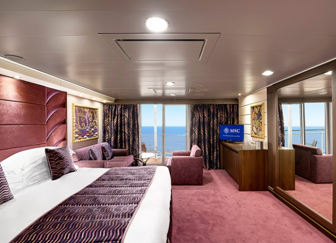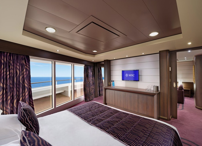 | YCT - MSC Yacht Club Executive and Family Suite s balkonem 36 m² + balkon 16 m². Ložnice, oddělený obývací pokoj, šatník, koupelna s vanou. 16. paluba. Cenový model MSC Yacht Club. | 142 495 Kč 47 498 Kč za osobu |
