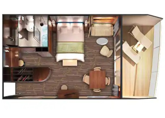 | S3 - Owners Suite 67 m² / balkon 14 m². Výhody Suite. 9. paluba - vpředu. Max 4 osoby. | 283 787 Kč 141 894 Kč za osobu | ||