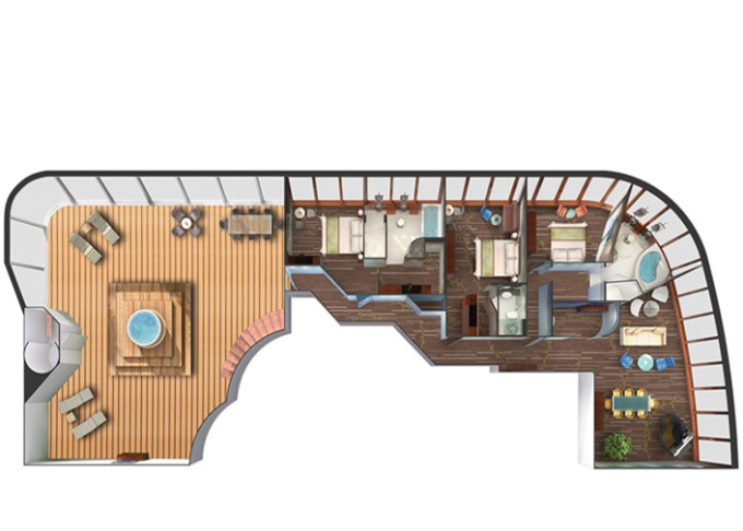 | S1 - Garden Villa - 3 ložnice 622 m² / balkon s vířivkou 414 m². Výhody Suite. 14. paluba - střed. Max 7 osob. | 579 054 Kč 289 527 Kč za osobu | ||