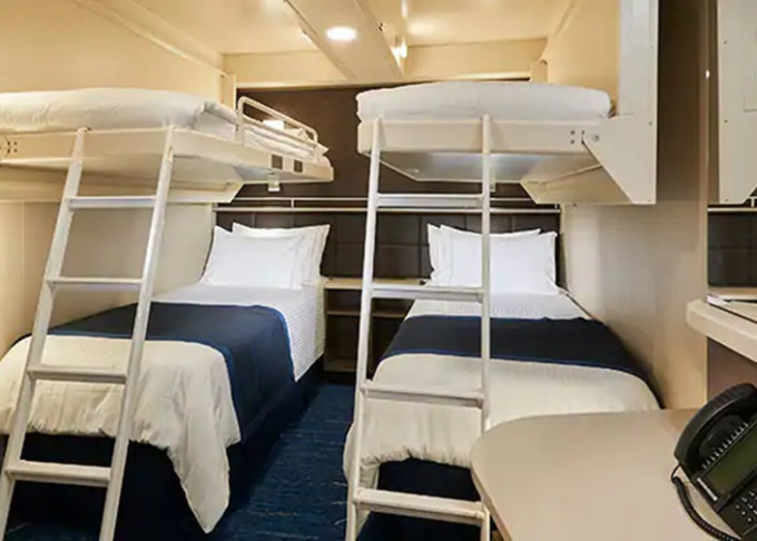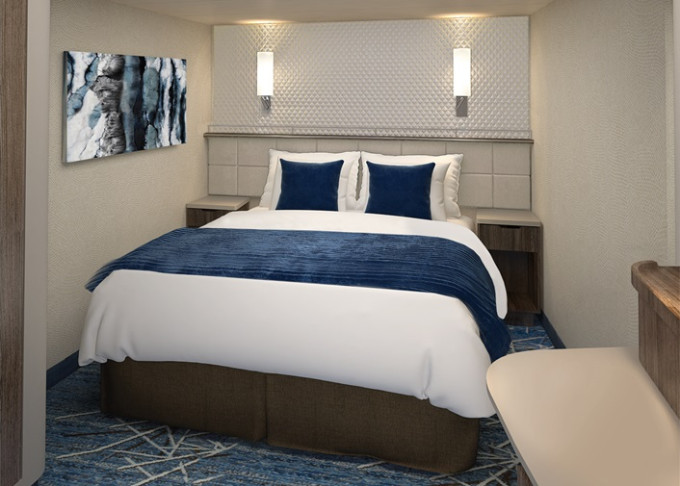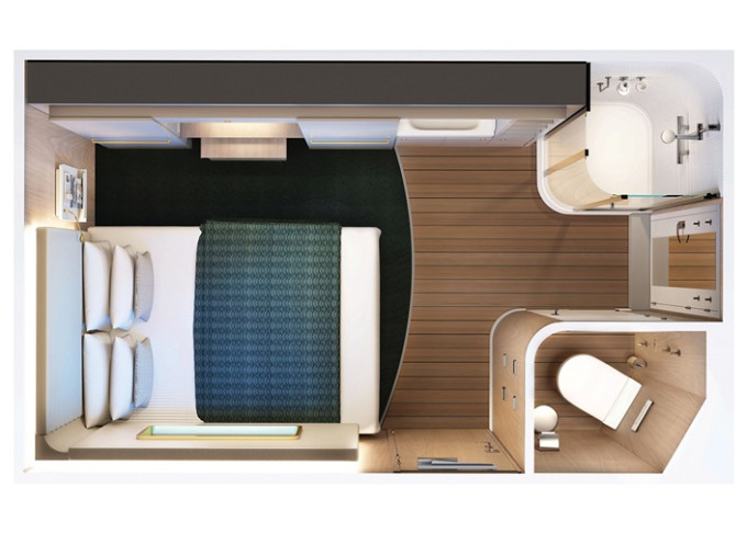 koupelna se sprchou a WC, 2 lůžka, v některých kajutách možnost přistýlek, toaletní stolek, úložné prostory, interaktivní TV, sejf, telefon, vysoušeč vlasů.