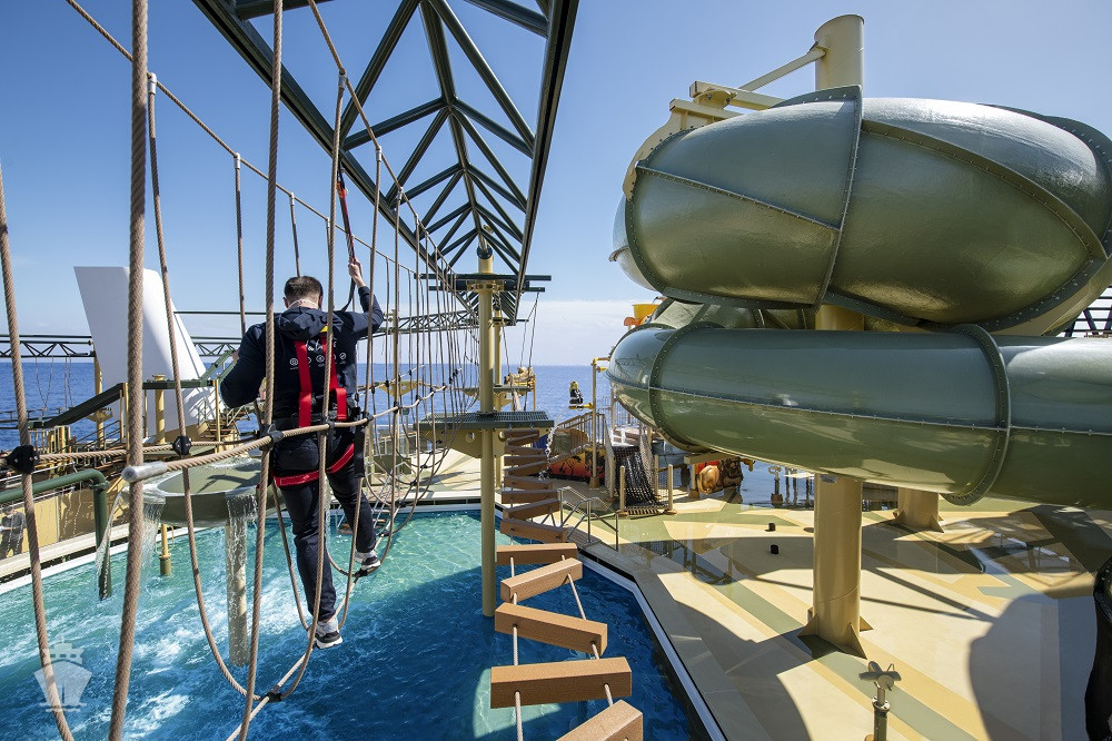 - sportovní aktivity na otevřených palubách (jogging, basketbal, fotbal, tenis), bazény a lehátka