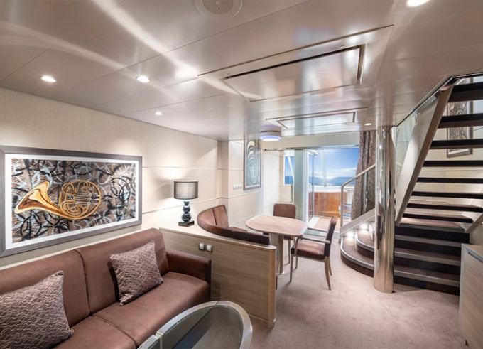 | YJD - Yacht Club Duplex Suite s vířivkou 59 m² + balkon 23 m². Vířivka. 2 podlaží, 2 šatníky, 2 koupelny (1 s vanou). 9. až 12. paluba. Cenový model MSC Yacht Club. | 326 548 Kč 326 548 Kč za osobu | ||