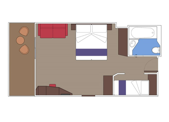 Kajuta s balkónem: 19 - 22 m², kajuta s manželskou postelí (na požádání 2 oddělené postele) a rozkládací pohovka. Klimatizace, koupelna se sprchou nebo vanou a WC, toaletní stolek, prostorná skříň, interaktivní TV, telefon, sejf, vysoušeč vlasů, virtuální asistentka ZOE. Balkony se stolkem a židlemi. Některé kajuty mají omezený výhled.