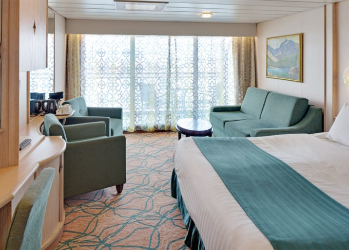 | VO - Ocean View Suite (bez balkonu) 44 m². Panoramatické neotevíratelné okna. Výhody Royal Suite Class. 8. paluba. Max 6 osob. | 75 120 Kč 25 040 Kč za osobu | ||