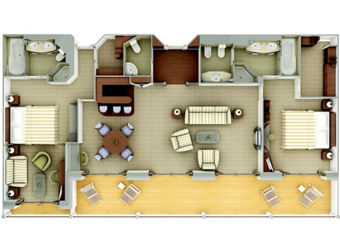 | SL - Silver Suite 61-65 m² (včetně verandy). Ložnice, oddělená obývací časť a jídelní část, vírívka. | 1 609 179 Kč 536 393 Kč za osobu |