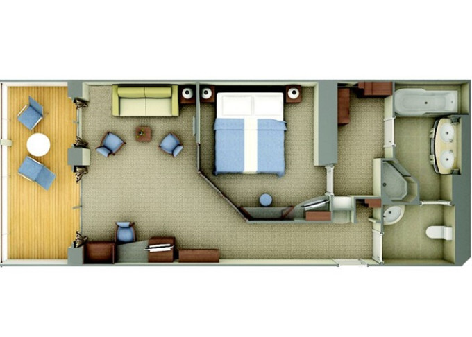 | SV - Superior Veranda Suite 32 m² (včetně balkona). Horní paluby. Ložnice s obývací částí. | 521 354 Kč 260 677 Kč za osobu |