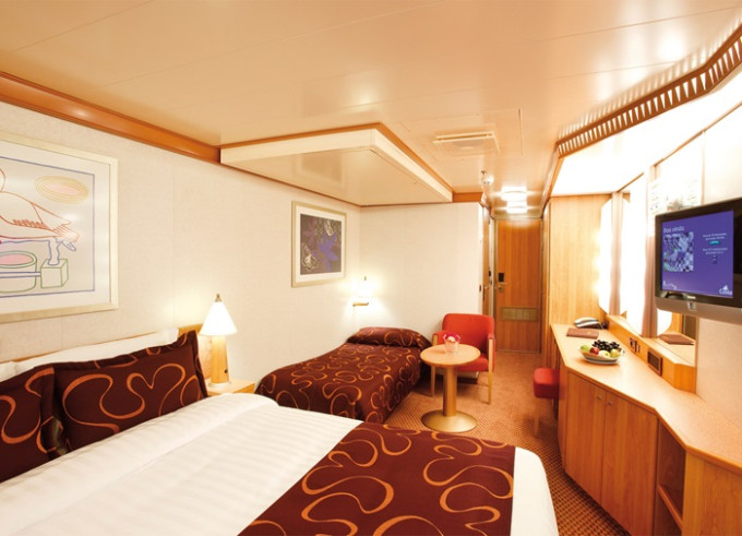 - plavba a ubytování v kajutě vybrané kategorie. Základní vybavení: koupelna s WC a sprchou, 2 lůžka spojitelná do manželské postele, skříně, noční stolky, toaletní stolek a židle, nastavitelná klimatizace, satelitní TV, trezor, vysoušeč vlasů, ručníky, osušky.