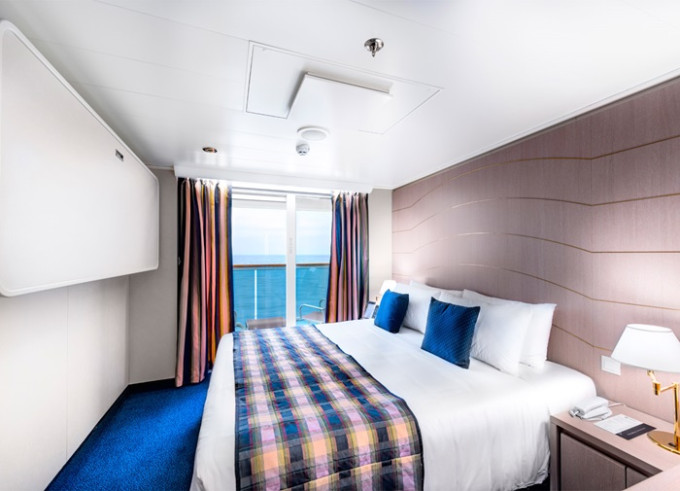 Kajuta s balkónem: 13 m², kajuta s manželskou postelí (na požádání 2 oddělené postele) a rozkládací pohovka. Klimatizace, koupelna se sprchou nebo vanou a WC, toaletní stolek, prostorná skříň, interaktivní TV, telefon, minibar, sejf, vysoušeč vlasů. Balkony se stolkem a židlemi.