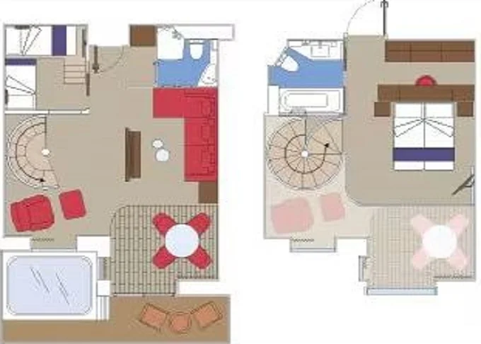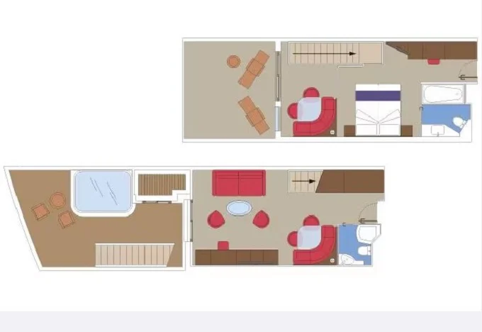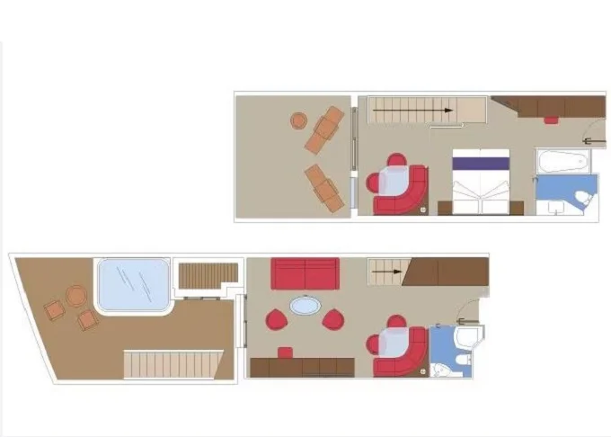 | YJD - Yacht Club Duplex Suite s vířivkou 46 m² + balkón 30 m². Vířivka. 2 podlaží, šatník, 2 koupelny (1 s vanou). Max 4 osoby. 16. paluba. Cenový model MSC Yacht Club. | 199 268 Kč 199 268 Kč za osobu | ||
