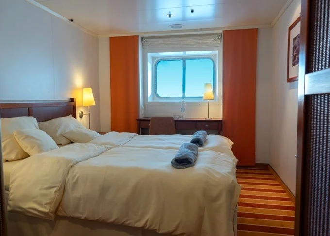 | XC - Kajuta s oknem 17 m². Neotevíratelné okno. 4., 5. paluba. Max 3 osoby. | 45 067 Kč 22 534 Kč za osobu | ||