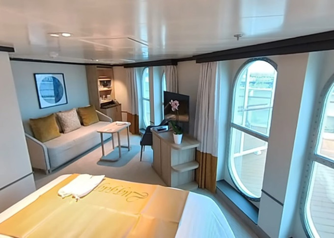 | B4 - Suite s balkonem 37 m² + balkon 11 m². Výhody Suite. 10 až 14. paluba. Max 3-4 osoby. Ložnice, obývací izba, mramorová koupelna s vířivkou. | 214 808 Kč 107 404 Kč za osobu | ||