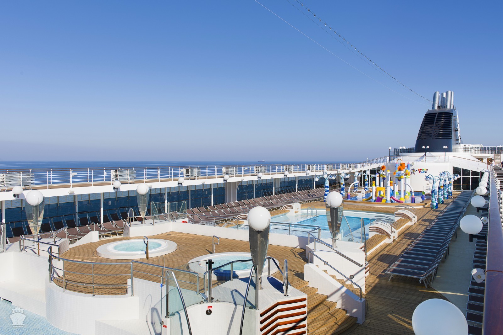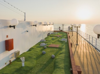 - sportovní aktivity na otevřených palubách (jogging, basketbal, fotbal, tenis), bazény a lehátka
