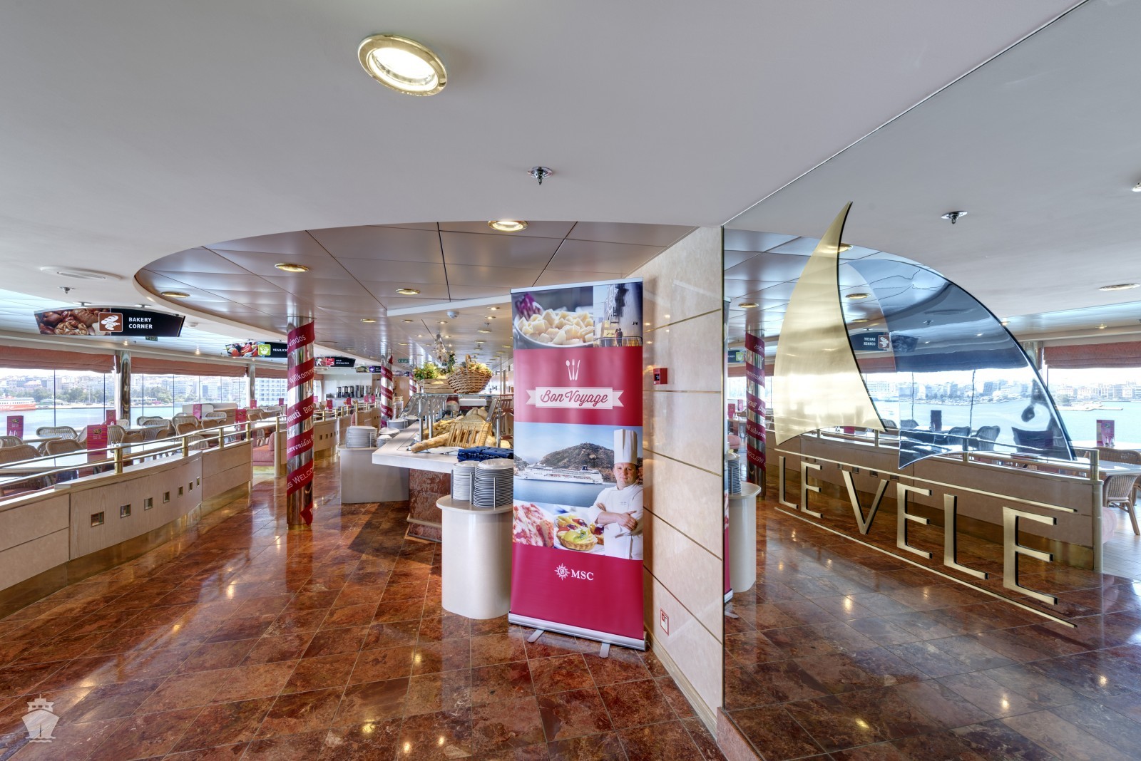 - ubytování v plně vybavené kajutě: vlastní koupelna se sprchou a WC, interaktivní TV, telefon, trezor, vysoušeč vlasů, regulovatelná klimatizace, minibar (za poplatek), Wi-fi (za poplatek)