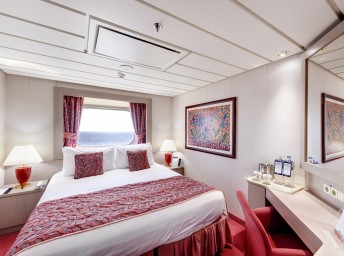 Kajuta oknem: 13 m², kajuta s manželskou postelí (na požádání 2 oddělené postele) a 1-2 vyklápěcí horní lůžka. Klimatizace, koupelna se sprchou a WC, toaletní stolek, skříň, interaktivní TV, minibar, sejf, telefon, vysoušeč vlasů, neotevíratelné okno. Některé kajuty v kategorii venkovní Bella a Junior Ocean mají omezený výhled.