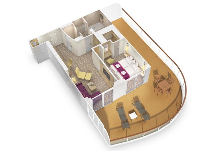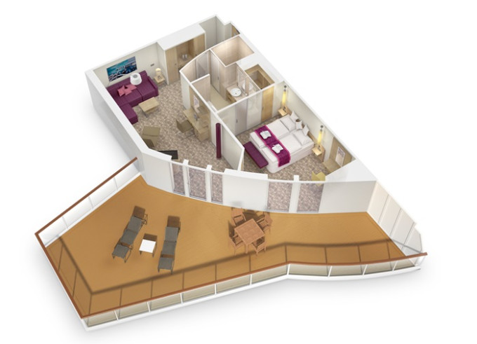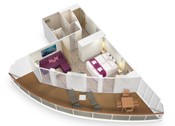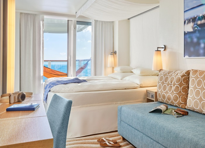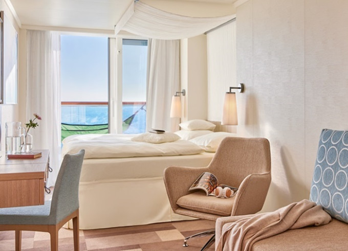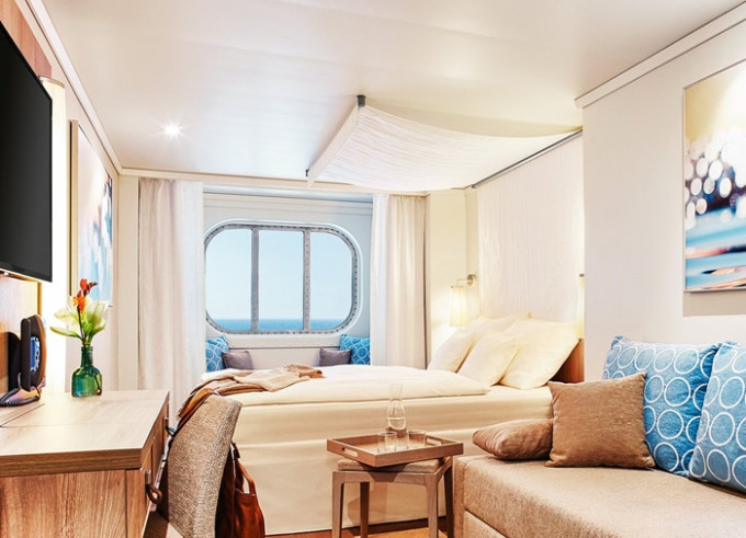 Ve všech kajutách se nachází koupelna se sprchou, 2 pevná lůžka a v některých kajutách též 2 přistýlky ve formě sklopných lůžek či rozkládacího sofa, úložné prostory, trezor, vysoušeč vlasů, telefon, TV, regulovatelná klimatizace.