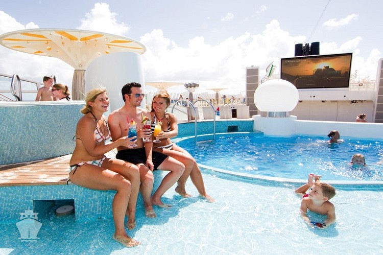 • používání zařízení lodě: bazény, vířivky a lehátka, sauna*, plážové osušky, posilovna