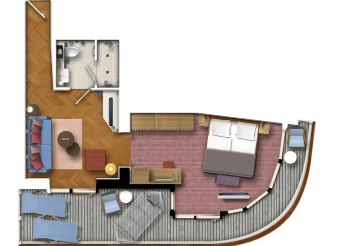 | JKAO - Junior Suite s balkonem 26 m² + balkon 7 m² se stolem. 10,11. paluba. Max 4 osoby. Výhody Junior Suite. | 445 783 Kč 111 446 Kč za osobu | ||