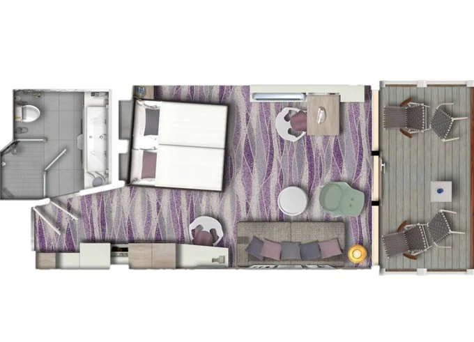 | JKAO - Junior Suite s balkonem 26 m² + balkon 7 m² se stolem. 10,11. paluba. Max 4 osoby. Výhody Junior Suite. | 397 687 Kč 132 562 Kč za osobu | ||