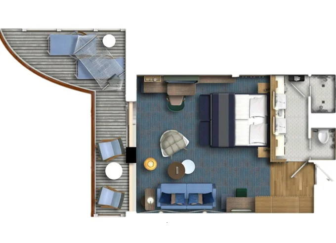 | JKAO - Junior Suite s balkonem 26 m² + balkon 7 m² se stolem. 10,11. paluba. Max 4 osoby. Výhody Junior Suite. | 390 724 Kč 195 362 Kč za osobu | ||