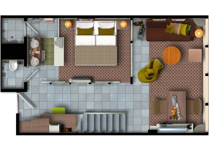 | SUHO - Himmel & Meer Suite 40 m² + prekrytá terasa 29 m² v patře se stolem, lehátky a s houpací sítí. Ložnice s obývací částí a jedálenským kútom. 15. paluba. Max 4 osoby. Výhody Suite. | 996 924 Kč 332 308 Kč za osobu |