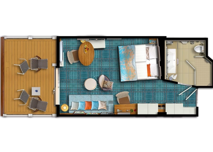 | BAKO - Kombi Kajuta s balkonem 17 m² + balkon 9 m² se stolem, 1 lehátko. 7. paluba. Max 4 osoby. | 478 272 Kč 478 272 Kč za osobu | ||