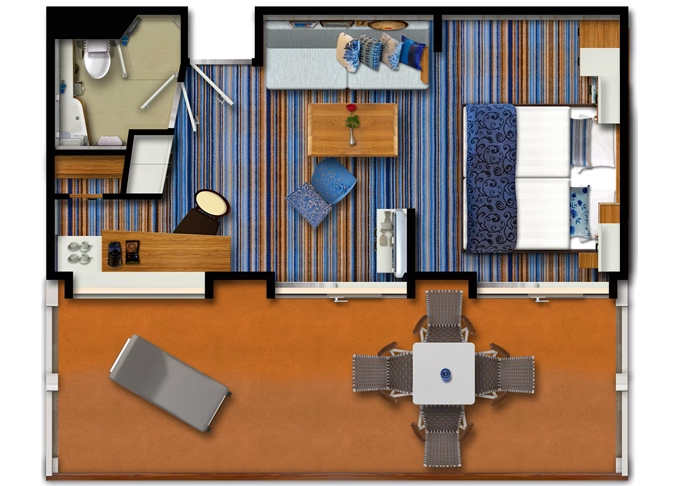 | JBAO - Junior Suite s balkonem 26 m² + balkon 8 m² se stolem. 10. paluba. Max 4 osoby. Výhody Junior Suite. | 298 040 Kč 298 040 Kč za osobu |