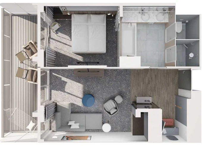 | SUFO - Fernweh Suite kat. A 28-38 m² + balkon 34 m² se stolem, lehátky a houpací sítí. 14. paluba. Max 4 osoby. Výhody Suite. | 169 010 Kč 56 337 Kč za osobu |