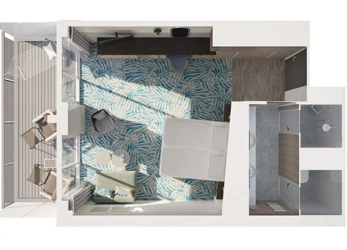 | BAGO - Kajuta s balkonem kat. G 17 m² + balkon 5-7 m². 6-10. paluba. Max 4 osoby. | 83 565 Kč 20 891 Kč za osobu |