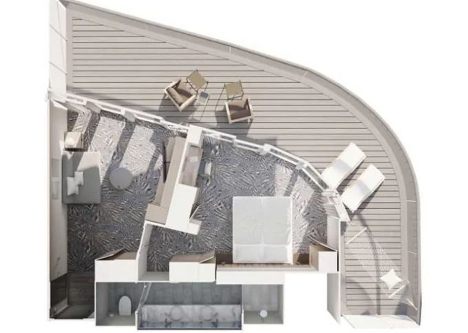 | SUFO - Fernweh Suite kat. A 28-38 m² + balkon 34 m² se stolem, lehátky a houpací sítí. 14. paluba. Max 4 osoby. Výhody Suite. | 159 015 Kč 53 005 Kč za osobu |