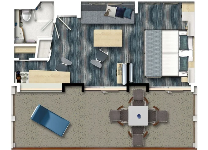| JKAO - Junior Suite s balkonem 26 m² + balkon 7 m² se stolem. . paluba. Max 4 osoby. Výhody Junior Suite. | 249 034 Kč 124 517 Kč za osobu | ||