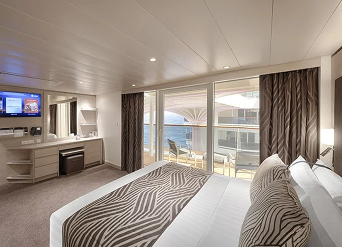 | BP - Kajuta s balkonem Deluxe Fantastica / omezený výhled 17 m² + balkon 3 m² s omezeným výhledom. 15-16. paluba. Cenový model Fantastica. | 80 560 Kč 20 140 Kč za osobu | ||