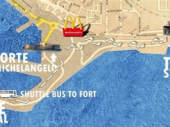 Město je od přístavu nedaleko a snadno jej zdoláte pěšky. V místních obchůdcích lze nakoupit různé suvenýry a v restauracích můžete ochutnat místní speciality.